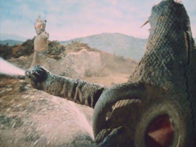 I also think it's safe to assume that the title hero of this film was brought to cinematic life through basic make-up effects and costuming over that of the more elaborate full-body creature suits, which are the norm for most Japanese giant monsters and fantastical beings.